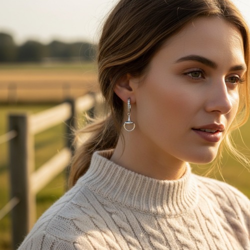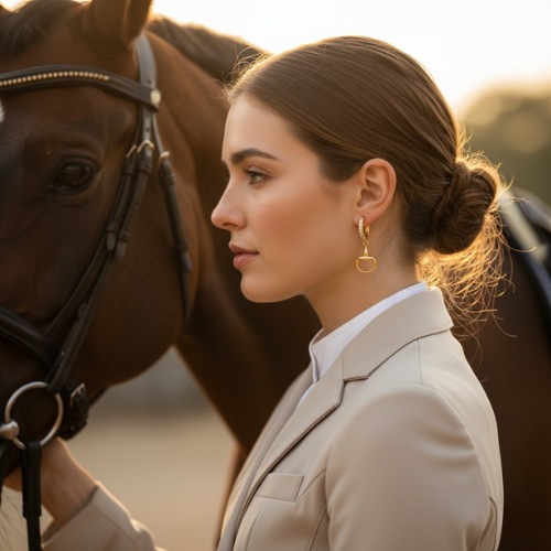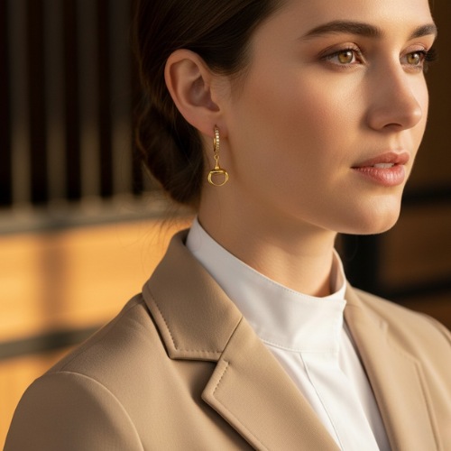 Accentuated with sparkling white zircons, the hoops offer a subtle touch of brilliance, elevating any outfit with understated luxury. Whether worn ringside or out to dinner, they bring a sophisticated nod to the rider’s world.