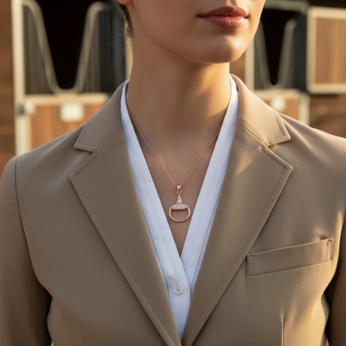 Crafted from 925 sterling silver, the snaffle bit pendant is adorned with subtle zircon embellishments, offering a refined sparkle without overwhelming the design. The pendant hangs from a 42 cm chain with an additional 3 cm extension, ensuring a comfortable and flattering fit.