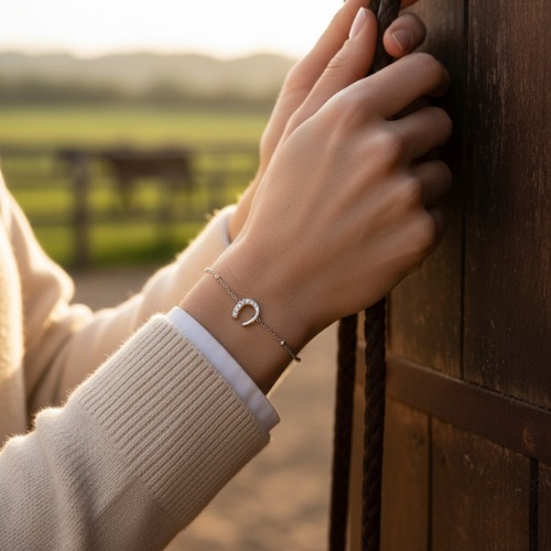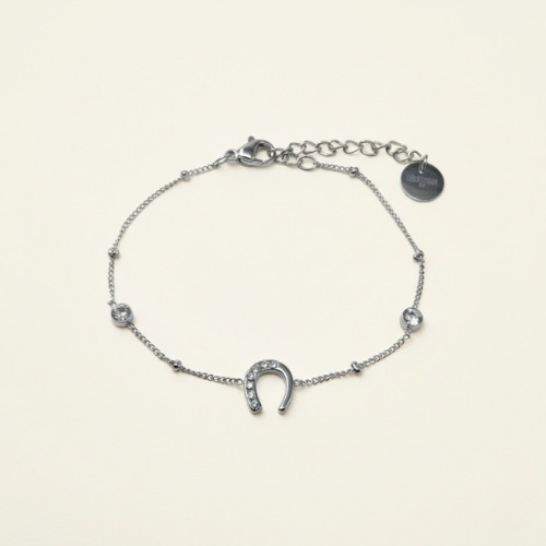The VEGA bracelet embodies the understated elegance and symbolism of the horseshoe. Made of stainless steel, it is adorned with delicate zirconiums that illuminate the wrist with refinement. Its fine chain, Punctuated with small shiny details, it can be worn every day as well as on your most beautiful occasions.
